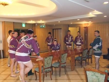 午前10:00からお祓いをうけ、午後12:00よりいよいよ奉納太鼓!
